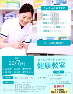 10月7日のカイロ教室は、午前と午後の2回行いますので、ご都合が良い時間帯に参加していただければと思います(^^)/
